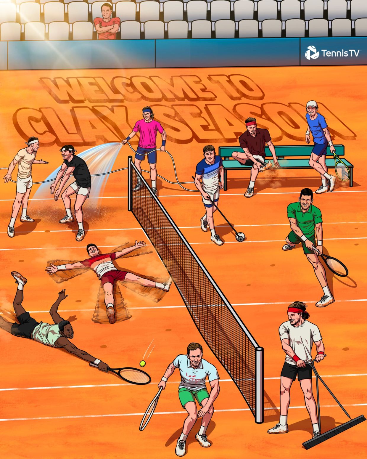 Пресс-служба ATP опубликовала в социальных сетях новый постер, посвящённый началу грунтового сезона. Открытие сезона на грунте ознаменовано турниром серии «Мастерс» в Монте-Карло (Монако).