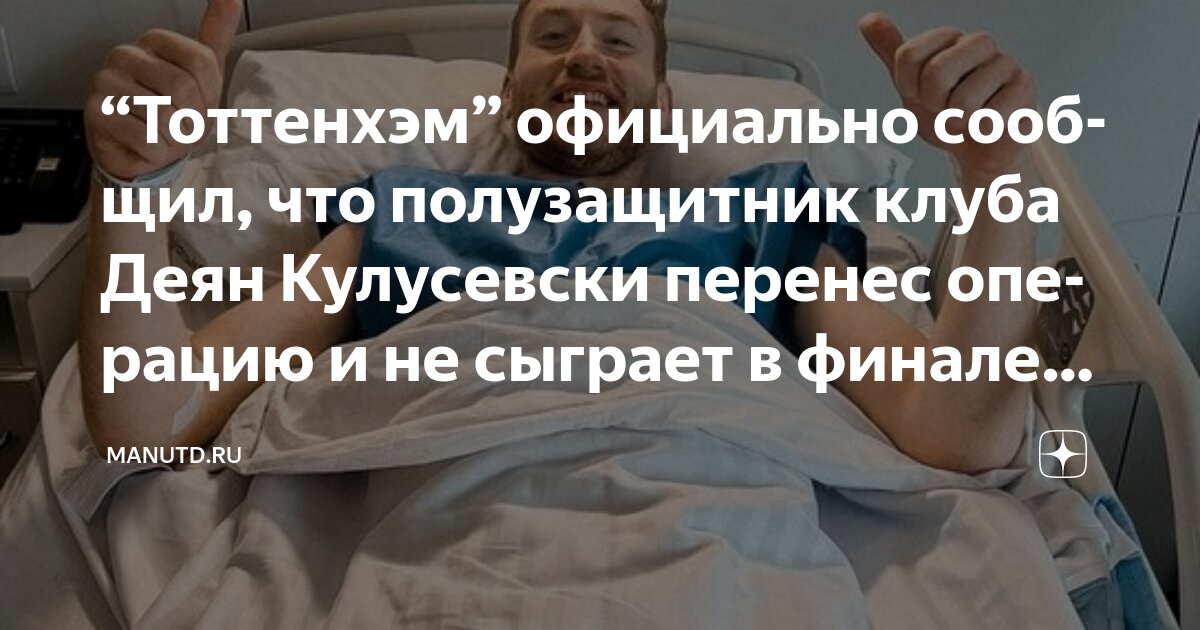 В заявлении «Шпор» говорилось: «Мы подтверждаем, что Деян Кулусевски получил травму правого надколенника в нашем матче Премьер-лиги против «Кристал Пэлас» в минувшие выходные. После дальнейшей консультации со специалистом сегодня полузащитнику была сделана операция, и он немедленно приступит к реабилитации под наблюдением нашего медицинского персонала. Мы все с тобой, Деки».