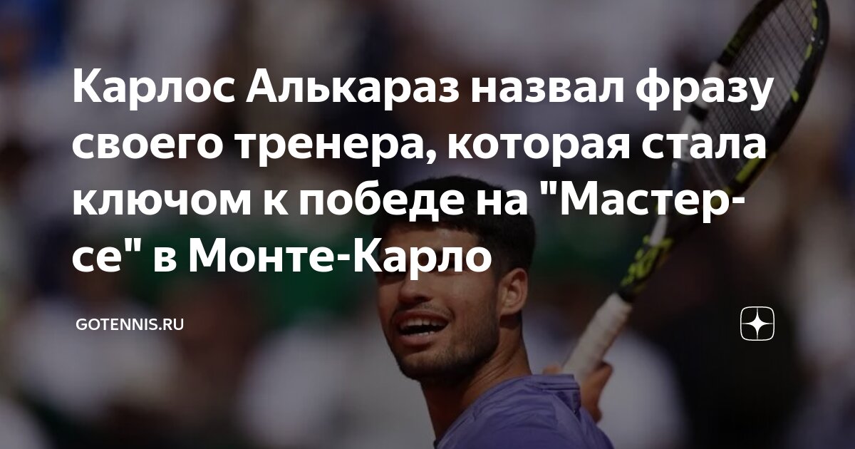 Испанский теннисист Карлос Алькараз, обладатель четырех титулов `Большого шлема`, рассказал, какая фраза его тренера Самуэля Лопеса помогла ему победить на турнире `Мастерс` в Монте-Карло.