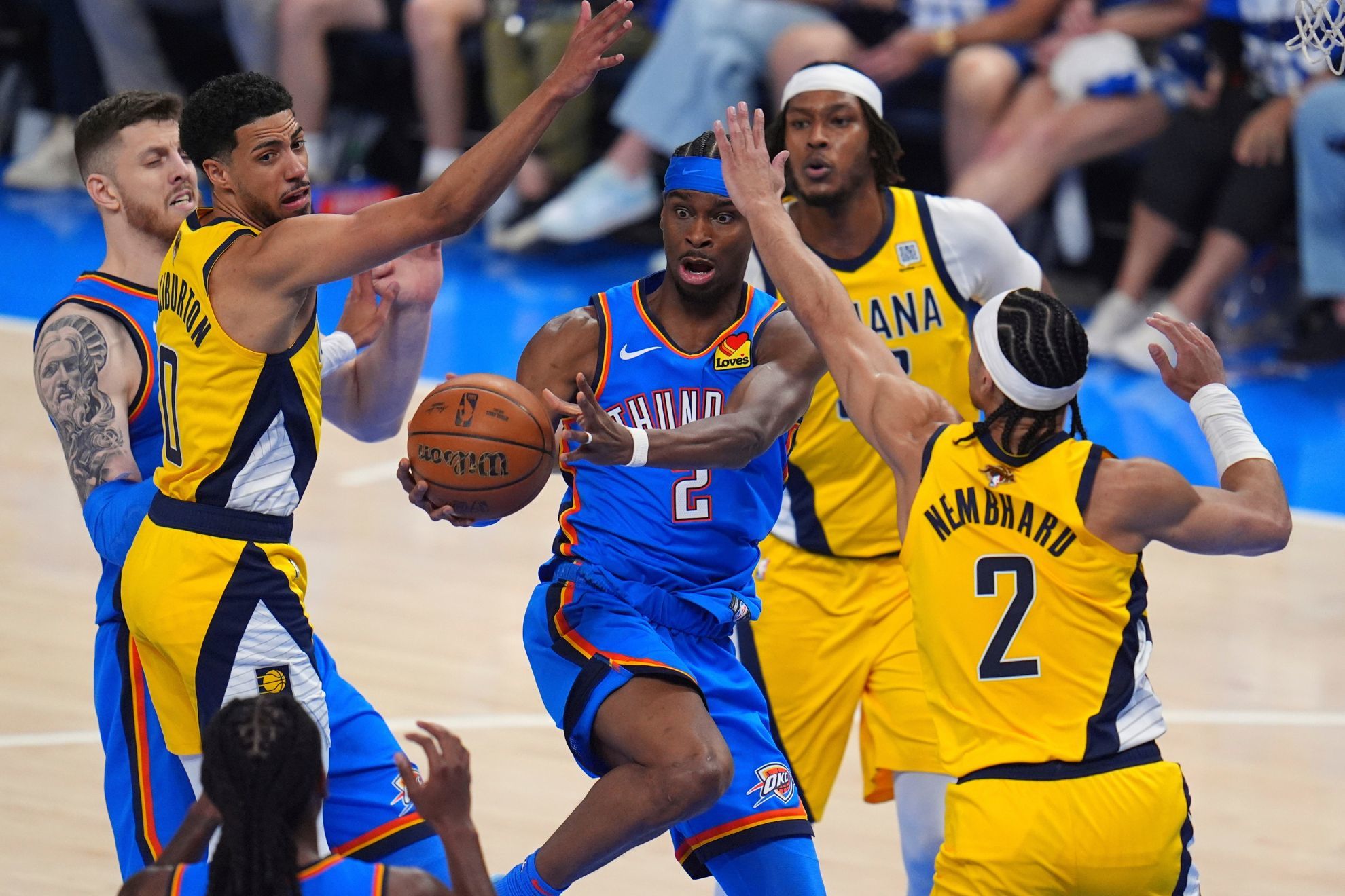С другой стороны, «Индиана» оказалась здесь отчасти потому, что это единственная команда, которая в плей-офф бросает лучше 40% из-за дуги. По броскам с получением, они показали 43,9%, и практически каждый игрок ротации, за исключением Оби Топпина и Беннедикта Матурина, был значительно точнее в плей-офф, чем в регулярном сезоне. «Тандер» не сталкивались с соперником, который начинал игру с пятью реально угрожающими трёхочковыми стрелками. Значимость дальних бросков как фактор «вариативности» в этой серии будет невероятно высокой.