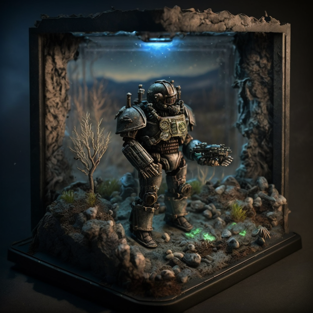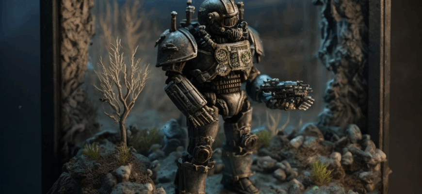 - Легендарные персонажи: В наборе представлены миниатюрные фигурки Одинокого Выжившего (Sole Survivor), его верного спутника Догмита (Dogmeat) и, конечно же, силовой брони T-60.