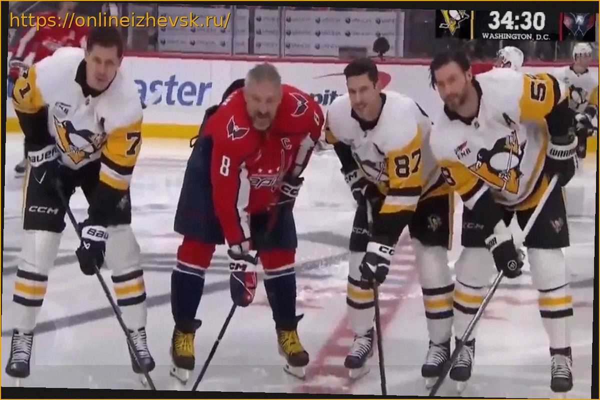 Российский форвард клуба НХЛ «Вашингтон Кэпиталз» Александр Овечкин запечатлен на совместной фотографии с нападающим «Питтсбург Пингвинз» Сидни Кросби. Снимок был сделан перед началом матча регулярного чемпионата Национальной хоккейной лиги.