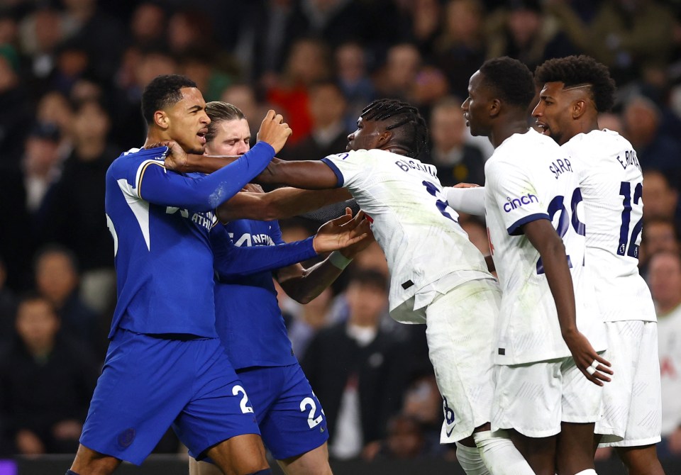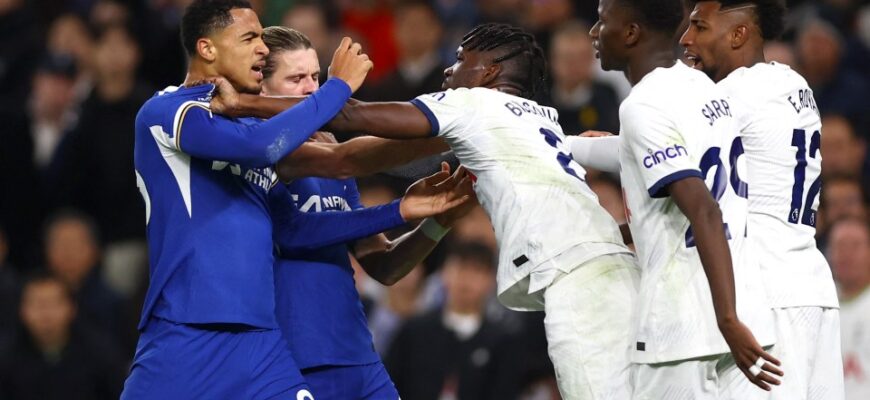 В четверг вечером в лондонском дерби между «Тоттенхэмом» и «Челси» разгорелась жаркая потасовка незадолго до перерыва.
