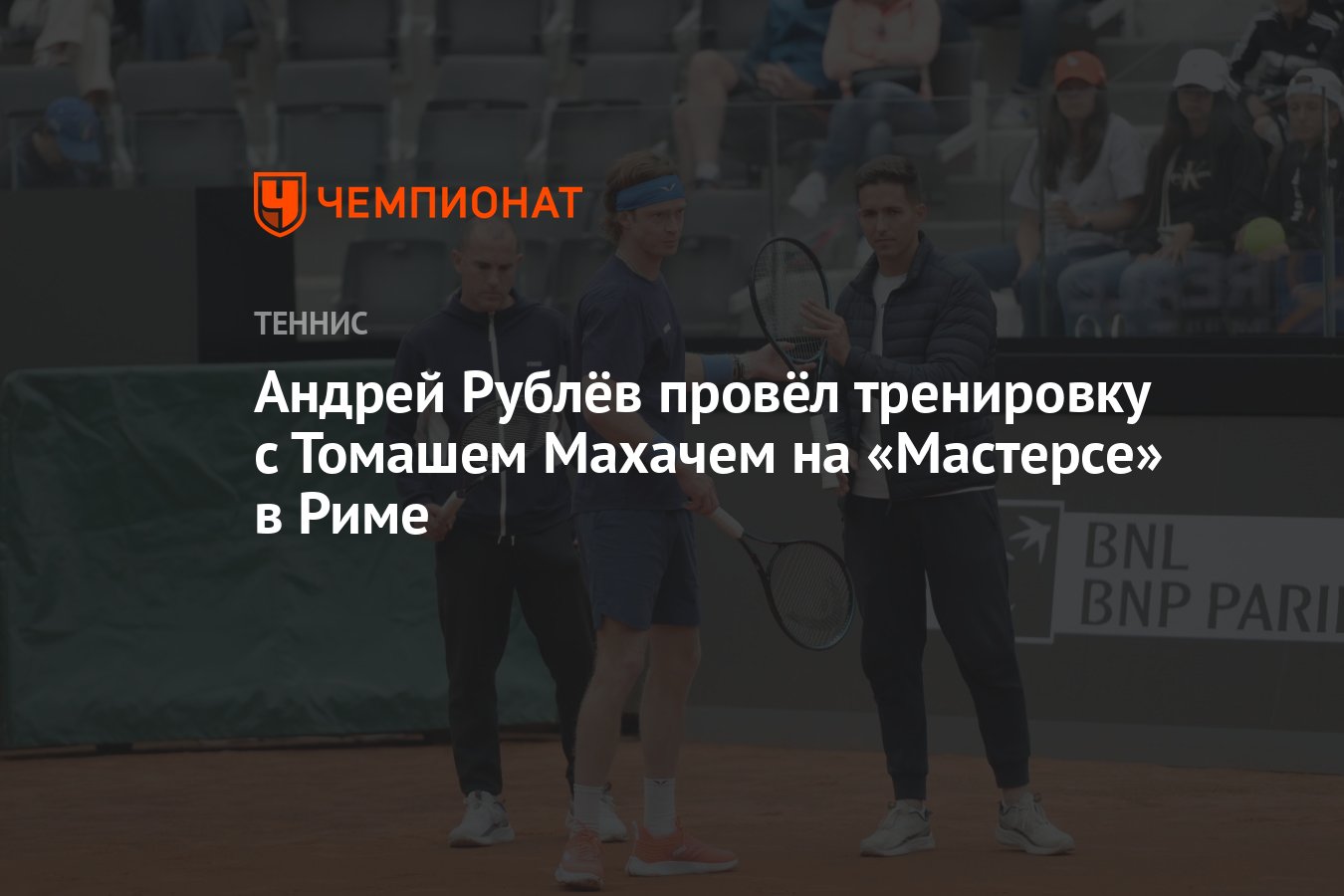 Российский теннисист Андрей Рублёв, занимающий 17-е место в мировом рейтинге, провёл совместную тренировку с чешским игроком Томашем Махачем (20-я ракетка мира). Спортсмены готовились к старту крупного турнира серии `Мастерс` в Риме.